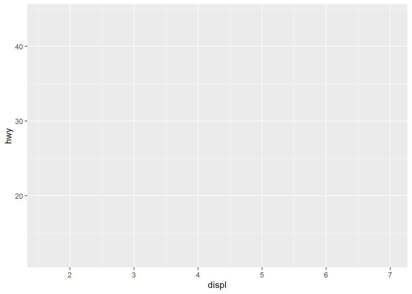 ggplot(mpg, aes(x = displ, y = hwy)) +